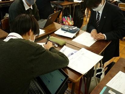 個々の調査結果を伝えあい、活発に話し合う班、思うような情報を得られず、議論を重ねる班の姿がありました。