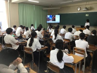 5月23日(木)、6月6日(木)に「ふるさと石川」という教材を用いた地域調べを行いました。一人ひとりが決めたテーマにそって、スライドを作りました。6月20日(木)は各クラスの優秀作品を発表し、同じクラスの生徒の作品を共有しました。一人ひとりの個性があるスライドを楽しみながら、たくさん石川の魅力や課題を知ることができました。