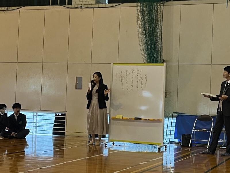 田谷さんは200年以上の歴史を持つ輪島塗の専門店である田谷漆器店の社長であり、生徒たちに沢山の言葉を投げかけてくれました。「すぐに行動することの大切さ」「身近なものを武器にする発想力」「石川の関係人口を増やすことの意義」など、生徒が今日から石川県のために行動しよう、頑張ろうと思えるきっかけを与えてくれました。
