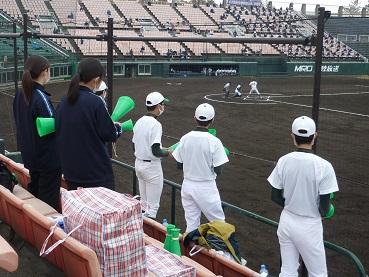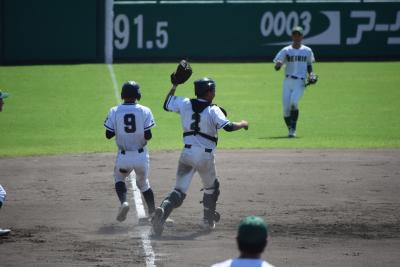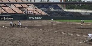 本校は金沢西高校と対戦しました。快音を響かせるも、なかなかヒットにつながらず、一進一退の攻防となりました。9回表に逆転のホームランを打たれ、その裏、粘りましたが、残念ながら4対3で、敗退しました。