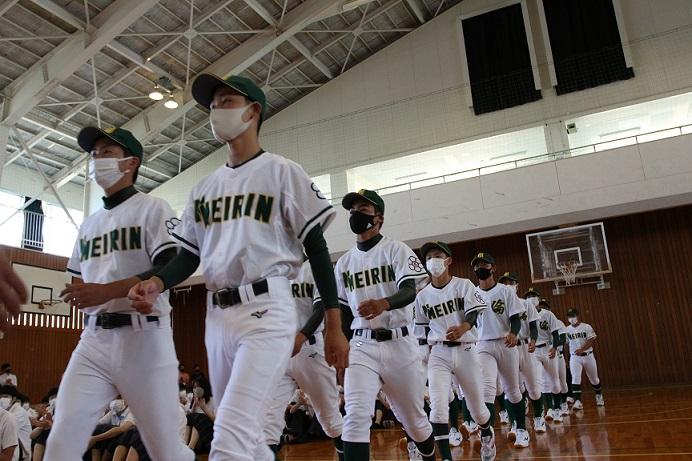 本日、野球部の壮行式がありました。職員、生徒の皆さまから激励をいただき、心が引き締まりました。