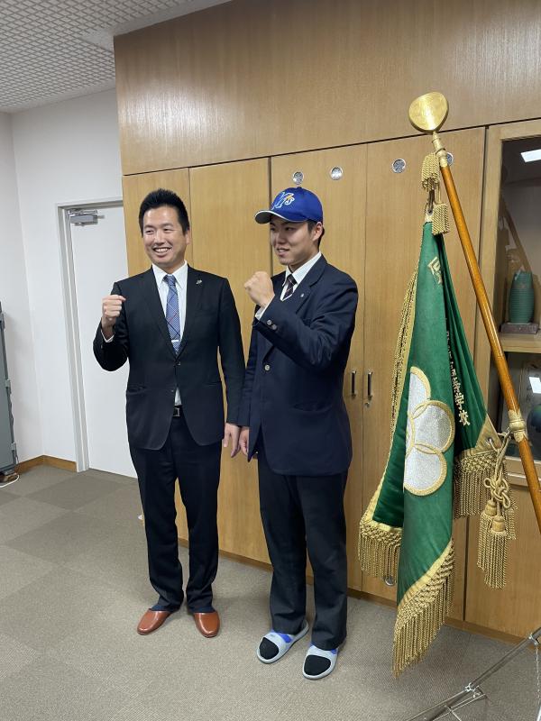 本日指名挨拶のため、石川ミリオンスターズの納谷様と辻様が来校され、今後の伸び代に期待していると激励の言葉をいただきました。