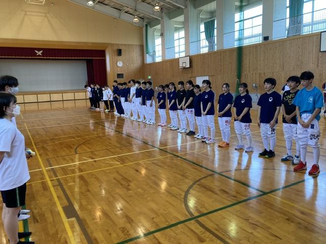 7月20日(日)に松任高校で開催された石川県民スポーツ大会に参加しました。今年は例年と内容を変え、紅白戦形式の団体戦で行われました。明倫高校からは男子3チーム(1チームは松任高校の生徒との混合)と、留学生のレシアさん(西高校の生徒との混合)が参加しました。