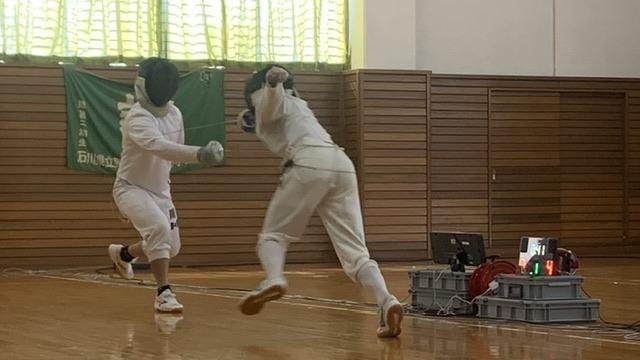 6/15(日)松任高校で毎年恒例の1年生大会(白山市民スポーツ大会)が行われました。今年はオリンピックからメディア等でのフェンシングの露出が増えたこともあり、男女合わせて60人の参加となりました。明倫高校からは留学生のレシアさん含む6名が参加しました。
