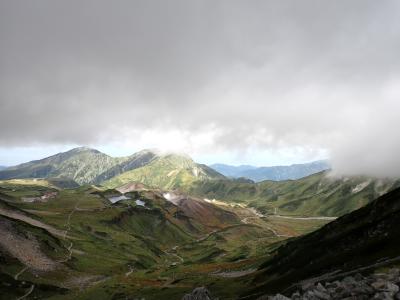 《雷鳥沢方面、一の越手前から。意外と天気は悪くなかった。》