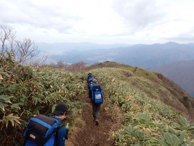 《時折藪が出てくる稜線、足を踏み外さないよう慎重さが求められる》