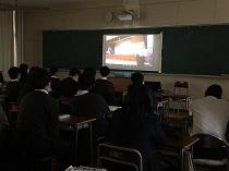 1年生の生徒たちは、視聴覚室から遠隔配信される講演を各教室で視聴する形で受講しました。
