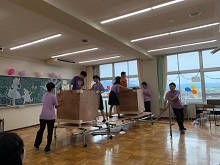 8月8日(木)絵本リーディングふれあい実習を実施しました。今年で8年目となるこの実習ですが、図書委員4名を中心に、今年は英語部8名とALTが初参加してくれました。もちろんサイエンス部10名の参加も恒例となりました。
