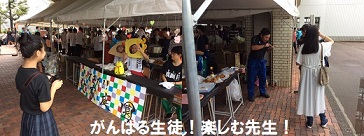 おかげさまで、明倫祭1日目を無事に終えることができました。朝方まで激しい雨で心配しましたが、開会式の頃には小雨になり、その後は晴れ間も出るくらいになりました。模擬店やお化け屋敷は、行列ができるほどの盛況で、生徒たちも楽しみつつ一生懸命取り組んでくれました。ご来校いただいた皆様に心よりお礼申し上げます。