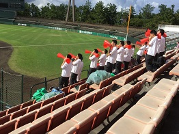 34度にもなる暑い日でしたが、スタンドでは、野球部員や保護者の皆様、OBの皆様、さらにブラスバンドを含むバス2台の応援の生徒たちで、熱い声援を送っていました。応援してくださった皆様、本当にありがとうございました。