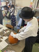 On October 13th, we held a Halloween party. Halloween is at the end of October, however, the Drama Festival is coming soon and we decided to hold our party earlier than usual. We enjoyed wearing Halloween costumes, eating a lot of sweets, and making a jack-o-lantern. It was a lot of fun!! We’ve left the jack-o-lantern in front of the library so that many people can see it. We’re looking forward to a Halloween party next year.