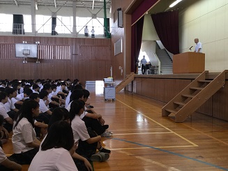 明日からは夏季休業です。勉強に、部活に、さらなるステップアップを目指して有効に時間を使ってほしいと思います。とは言っても3年生は明日から、1、2年生は月曜日から補習があります。これらも利用して、自律(きちんとした生活習慣作り)と実力upに取り組んでほしいものです。