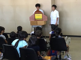 お昼は購買のパンをいただき、最後はりんくんに見送られてお帰りでした。子供たちにとって楽しいひとときであったのではないかと思います。また、本校生徒にとっても、小学生とふれあう貴重な体験となったようでした。