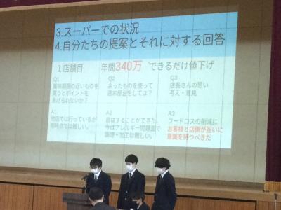 の3班が探究成果を発表しました。鋭い切り口の質問が飛び交うなか、どの班もしっかりと応答していました。