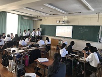 その第一歩として、グループでの企業研究を行い、発表して共有しさらに深める活動を行いました。発表のなかで、同じ企業を調べても、いろいろな視点があり、企業の様々な姿が浮かび上がってくることに気がついたようです。これをふまえて、企業に連絡を取り訪問して様々なお話を伺う予定です。