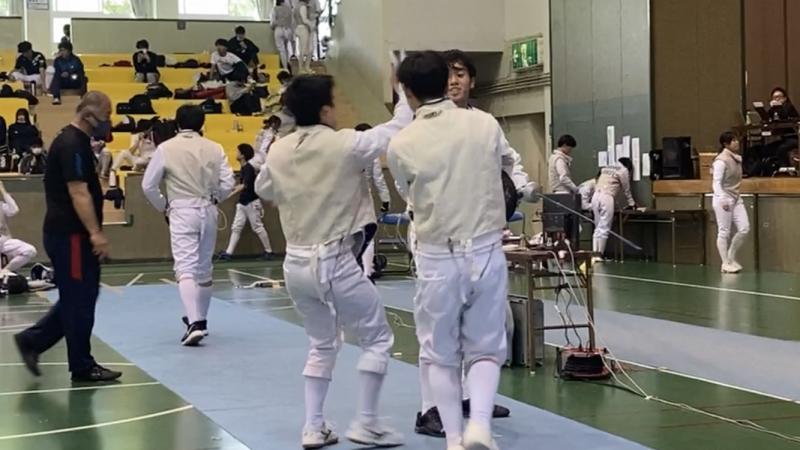 2日目、3日目は個人戦の予選と決勝トーナメントが行われ4人が出場しました。その結果、21H松村くんがエペで(64位/91人)、23H小谷口くんがサーブルで(45位/67人)、それぞれ予選突破し、決勝トーナメントに進出できました。