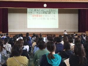 総会に続いて今年の重点取り組みについて北島副校長から説明があり、その後各学年の会場に分かれて説明会がありました。