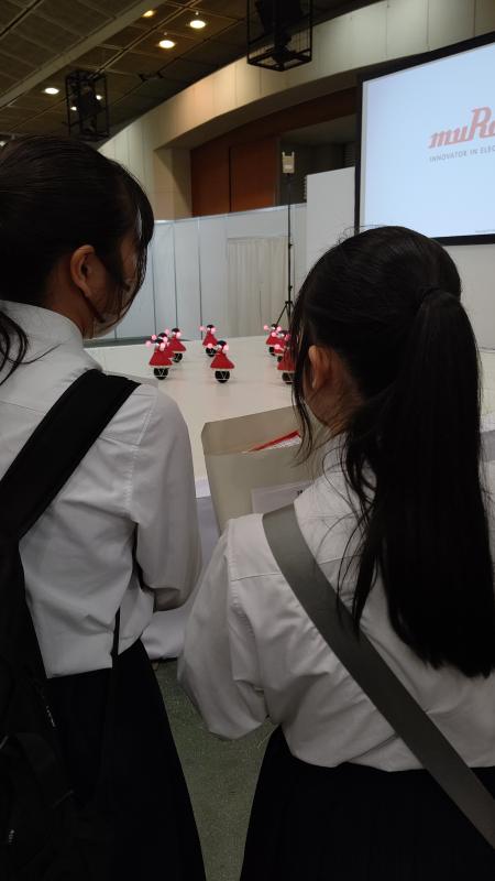 ◆M製作所のロボットによるチアリーディングに見入っています。