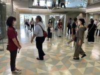 文系コースが訪問した名古屋証券取引所では、案内をする担当者の説明に生徒は熱心に耳を傾け、資本主義経済において中心的な役割を果たしている証券取引所について理解を深めていました。