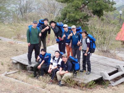 今日は新人歓迎登山をしました。新しく入ってきた1年生に山岳部の登山を知ってもらうための軽めの登山です。新入りが新人じゃなかったので特に問題なく歩けていました。登っている間、1年生と会話をして仲を深めることができました(ほとんどゲームと昔のテレビの話題でしたが)。山頂についたら写真を撮りました。今後もこのメンバーで登山することが楽しみになりました。
