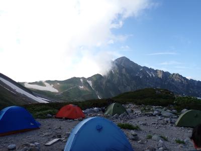 1日目は、ゴンドラに乗った後テント場まで約3時間ぐらいのルートでとても楽なルートだと思っていましたが、大間違いでした。最初から急斜面が多く体力をもっていかれテント場に着く頃は疲れていました。テント設営、炊事は夏山の経験が生きていたのかとても正確で素早くできたので良かったです。この日は他の登山者がとても多く大変な一日になりました。