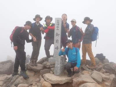 9月7日(土)に新人大会へ向けたトレーニングとして、白山へ日帰り登山を実施しました。今回は砂防新道から登り、観光新道を下山するコースです。天気はあまりよくなく、雨にこそ降られなかったものの山の上部には雲がかかっている状態で、登に従ってあたりはガスに包まれました。