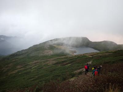 《2日目、小蓮華山で撤退し、大池山荘テント場に戻る直前。》