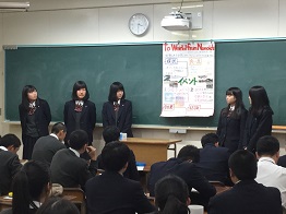 2年生が総合的な学習の時間で取り組んだ「Meirin Glocal Project」の全体発表会が行われました。各クラスでグループに分かれ10社の企業を訪問し、地域と世界をつなぐような企画を提案するもので、企業ごとでの発表会で選ばれた10のグループの発表が行われました。どのグループの発表も、企業を調べ、訪問して色々とお話を伺った上で、新鮮な視点での提案を行っていました。生徒による投票の結果、マルガージェラートの発表が第1位に、グランゼーラの発表が審査員大賞となりました。