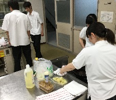 そんな今日の午後、明倫祭で模擬店を担当する3年生が、商品の試作を行いました。それぞれのクラスが、どのくらいで作ることができるか?味は?盛り付けは?等といったことを試していました。作り方は秘伝なのでここでは紹介できませんが、本番に向けた準備をしっかり進めていってほしいものです。