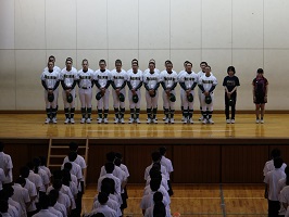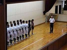 学校長、生徒会長からの激励の言葉を受けて、感謝の気持ちを忘れず、勝利を目指して全力で戦ってくることを誓ってくれました。持てる力を存分に発揮し、栄冠を勝ち取ってきてくれると信じています。