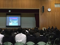 次に1,2年生および保護者の方を対象に講演会が行われました。2名の講師の方に来ていただき、はじめにNTTドコモ北陸支店の長坂雅人氏の『5Gで創る未来』と題した講演では、通信技術が飛躍的に発達していく世の中で、どのようにその技術を使いこなしていくかが大切であると教えていただきました。また、ドコモCS北陸の一ノ田悦雄氏からは『スマホ・ケータイと正しくつきあうために』と題し、生徒だけでなくスマホを扱う人であれば誰でも陥りやすい危険性についてお話をしていただきました。