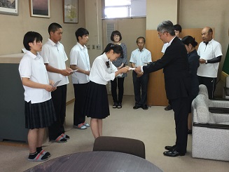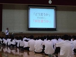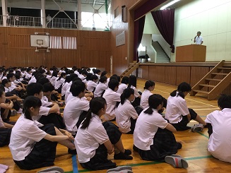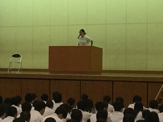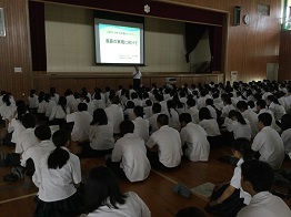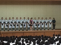 受賞報告会では今年の県総体の結果などの報告があり、その後はNHK全国高等学校放送コンテストに出場する放送部に対しての激励会が行われ、学校長、生徒会長が激励の言葉を述べました。