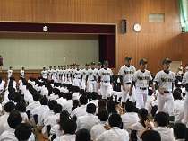 1学期期末試験が終わった今日、野球部および卓球部の壮行式が行われました。野球部は20日の9時から、金沢市民野球場での第1試合に金沢桜丘高校と対戦します。卓球部は2年生の俵さんが、21日から福井市で行われる中部日本卓球選手権大会ジュニア女子シングルスに県代表として出場します。みなさまのご声援をお願いいたします。