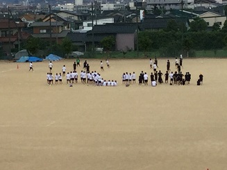 先日の台風の影響で、グラウンドの砂が近隣の道路や住宅に飛んでしまいました。