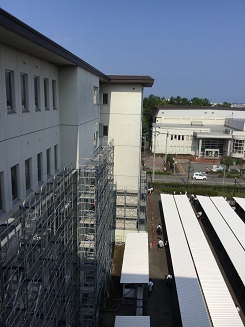 今年度の工事が始まりました。本校の大規模改修工事も3年目、今年は北棟と職員室のある正面の建物、加えて第2体育館が工事の対象になっています。北棟の周辺では、工事用の足場の組み立てが始まりました。工事期間中は色々と不便が生じますが、終わればきれいになった建物で過ごすことが出来ますので、しばらくの間ご容赦ください。よろしくお願いいたします。