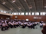 1年生は、防犯教室で、白山警察署の生活安全課の方と、教育委員会の指導主事の方から防犯についてのお話を伺いました。講話の中では、刑法犯罪からネットやSNSを巡る様々なトラブル、いじめの問題まで、その実情を知るとともに自分が被害者にも加害者にもならないようにするための心構えについて説明され、生徒たちも真剣の表情で聞き入っていました。今日のお話を踏まえて、日々十分気をつけていってほしいと思います。