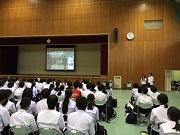 1年生は、2学期から総合的な探究の時間で、野々市明倫高校を紹介する動画の制作に取り組んでいきます。その最初として、動画作成の基本について、プロの方からお話を伺いました。講師は株式会社アビックスタジオの専務取締役 野呂昌春 先生。地元企業のテレビCMや地元放送局の番組制作などに広くに携わっておられる方です。動画作成での目のつけどころや考え方などを、実際の動画も使って解説してくださいました。暑い中でしたが生徒たちは熱心に聞き入っていました。この後企画から制作に取りかかり、各クラスでのコンペを経て、11月2日の学校公開の中で全体コンペを行う予定です。どうぞご期待ください。