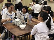 合唱部の歌、華道部のフラワーアレンジ体験、図書委員のおはなし会、茶道部のお点前(お抹茶)体験、サイエンス部の空気砲実験。子どもたちは楽しみながら、時に真剣な表情で取り組んでいました。