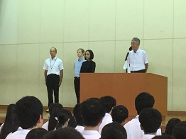 終業式では、校長先生から、この1学期でいろいろ出来るようになり成長した自分を褒めることの大切さをお話しいただきました。その後は、ALTのティファニーさんの離任式。ティファニーさん、本当にお世話になりました。
