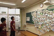 家庭部のプロ級のご飯とスムージー。おうちでも作ってみたいお味でしたね。スクープ満載の明倫新聞、みんなに関心を持ってほしいと、見せ方・クイズなど工夫していた保健委員会・図書委員会。