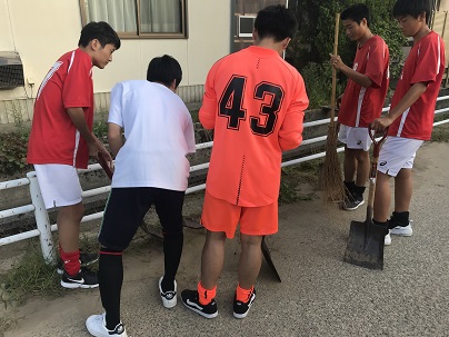 そこで、野球部、ソフトボール部、サッカー部の部員を中心に、生活道路や側溝に溜まった土砂の撤去作業を行いました。