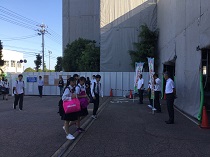5月から始まったPTA朝のあいさつ運動が、本日最終日を迎えました。朝のわずかな時間ではありましたが、ご参加いただいた保護者のみなさまには、生徒の表情や学校の様子を見ていただけたのではないかと思います。お忙しい中ご協力いただきありがとうございました。