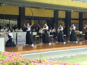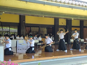弓道部は、女子は予選通過を果たしました。男子は予選通過を目指し2回目の競射中です。結果はこの後改めてお知らせします。