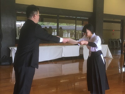 4月28日(日)、29日(月)県立武道館において行われた石川県高等学校春季弓道大会において、3年瀬川瑞穂さんが8射7中で女子個人3位に入賞しました。また、女子団体では、40射20中で3位決定競射となりましたが惜しくも4位となりました。男子もよく頑張りました。