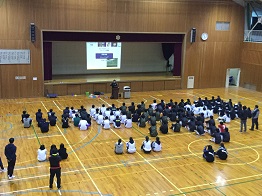 放課後には、部活動の合同トレーニングとして、ライフキネティックというエクササイズを行いました。石川ライフキネティックの今野隆平トレーナーの指導で、野球やソフトボール、バスケットボールなどの部員が参加しました。ライフキネティックとは、ドイツで開発された運動と脳トレを組み合わせたエクササイズです。ハードな動きではないのですが、ちょっとした動作を同時にしたり瞬間的な判断で動いたりと、簡単そうで難しいエクササイズがたくさんあります。説明を聞いた後エクササイズを行い、生徒たちは「あれ?」「あれ?」という声を上げながらも、とても楽しそうに取り組んでいました。