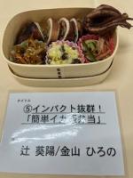 11月9日(日)石川県料理学校協会主催の「じわもんお弁当コンテスト」の2次実技審査に、家庭部員の25Hの辻さんと金山さんが選ばれ、出場して来ました。部員全員が各自レシピを考案し校内選考の後、応募した「インパクト抜群!簡単イカ飯弁当」は、124組中の9組に選ばれ、10年連続入賞を果たすことができました。練習の甲斐があって当日は、堂々と調理して完璧に仕上げ、二人をとても頼もしく感じました。