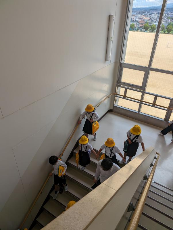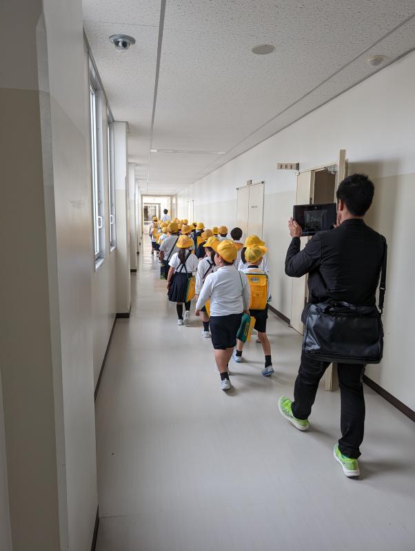野々市小学校「生活科」の活動で、「校区にある建物を調べよう」という課題のもと、明倫高校を選んだ2年生30人が引率の先生お二人と来校しました。