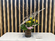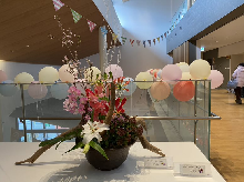 華道部は2人一組で3作品、文系チームと理系チームに分かれてそれぞれ1作品をつくりました。野々市市の皆さんから、温かい言葉をいただいたり、作品を褒めていただいたりしてとても嬉しく思っています。