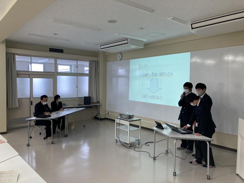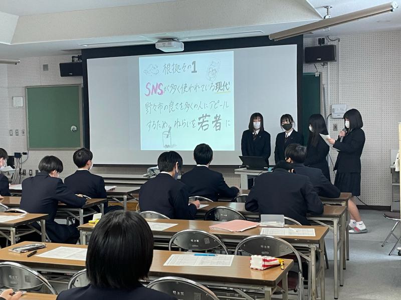 本日7限目の総合的な探究の時間において、1年生が野々市市1ランクアップ計画のテーマ別発表会をおこないました。7つのテーマ(防災・都市開発・国際・環境保全・文化スポーツ・医療福祉・観光)から、野々市市がよりよい街になるためにはどうしたらよいか、11月から取り組んできました。今日は野々市市役所の方々10名を本校にお呼びし、生徒たちの提案を発表しました。発表の生徒、発表を聞く生徒の顔は真剣そのもの。一生懸命取り組んできたからこそ、発表会を良いものにしたいと気持ちが入っていました。