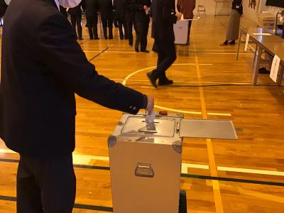 生徒は記載台で記入した投票用紙を、緊張した面持ちで投票箱に入れていました。